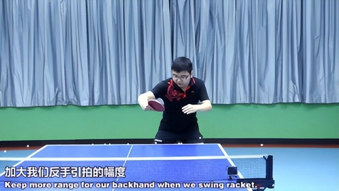 2.重心压低与收腹:为了扩大引拍幅度,反手拉球时需压低重心,收腹弯腰。同时,肘关节前顶,以增加反手引拍的力度和稳定性。